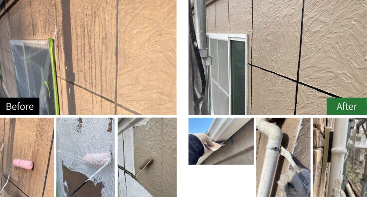 今回の工事では、外壁の塗装と雨樋の付帯部塗装を行いました。
