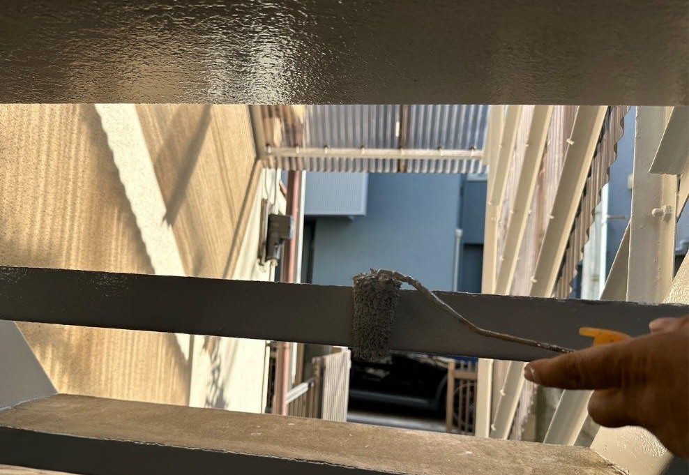 今回は、共用階段という人の往来が多い場所のため、塗膜の「耐摩耗性」と「防錆性」をしっかり確保することが重要です。