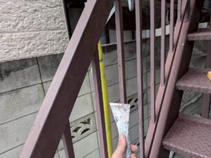 今回は、共用階段という人の往来が多い場所のため、塗膜の「耐摩耗性」と「防錆性」をしっかり確保することが重要です。