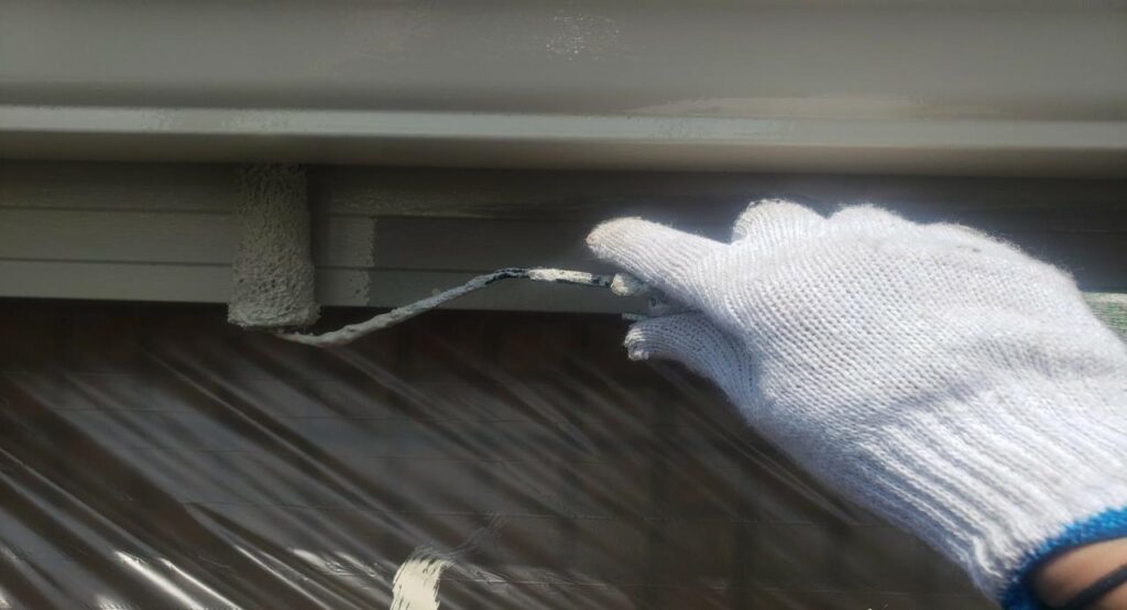 破風・鼻隠しは外部に露出しており、日差しや雨の影響を受けやすい部位のため、エッジ部分や折り返し部に塗膜が薄くならないよう、ローラーの当て方を調整しながら塗り進めています。