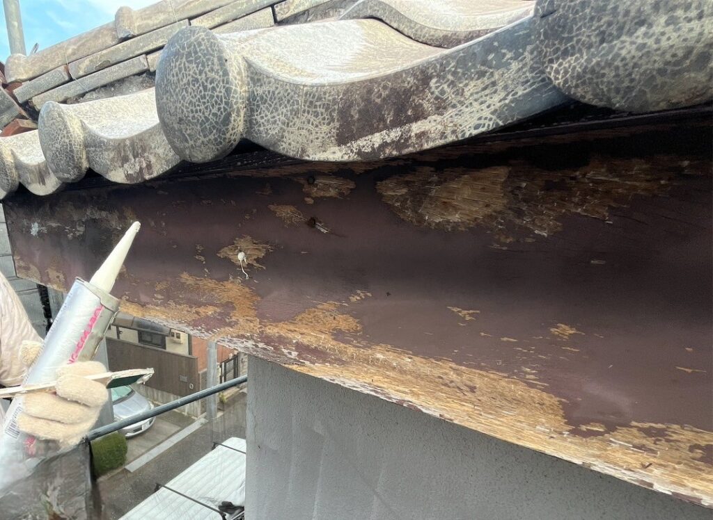 この補修を行わないと、雨水が木部内部に入り込み、腐食や塗膜の早期剥離につながるおそれがあります。