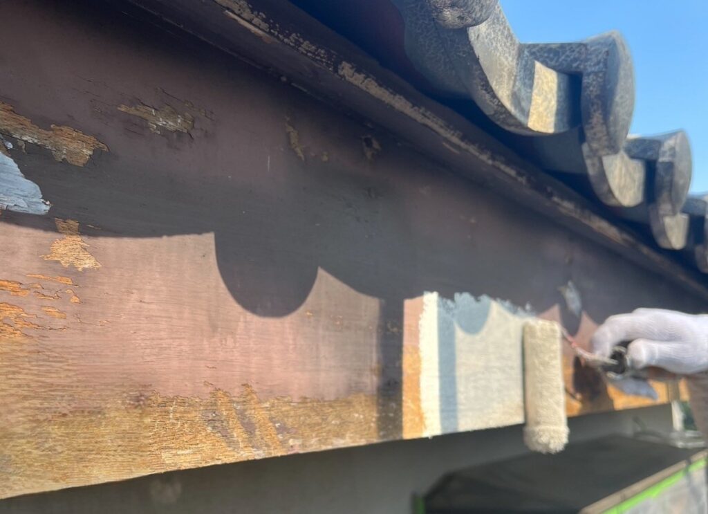 今回は、練馬区で施工した木製の軒天・破風の下地処理と下塗り工程をご紹介します。