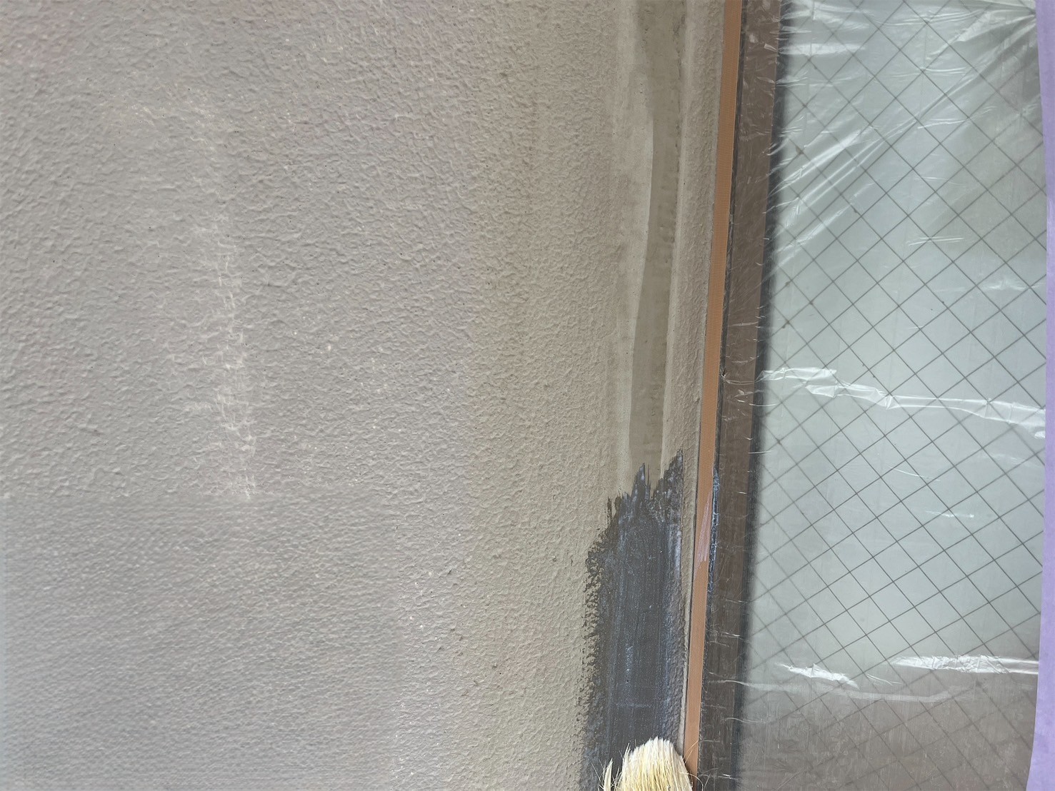 補修箇所やサッシ周りは、特に塗り重ねムラが出やすいため、ローラーと刷毛を使い分けながら細部までしっかりと塗布しました。