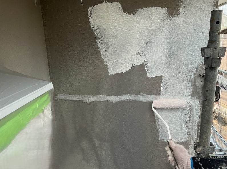 ・モルタル補修後のシーラー塗布で密着性と下地の均一性を確保