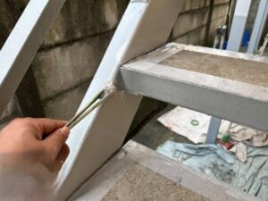 板橋区の集合住宅にて、共用階段の鉄部塗装工事を行いました。前回は、鉄部全体の高圧…